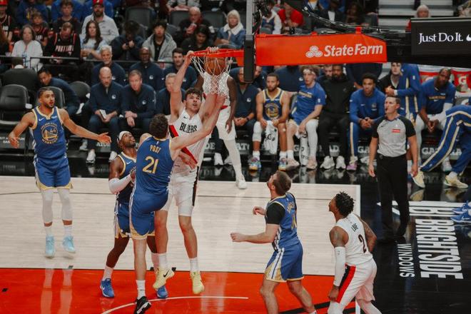 9分6板1帽!杨瀚森又创1新高!开拓者遭18分大逆转,库里轰28分