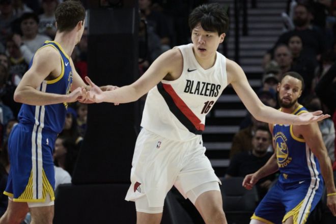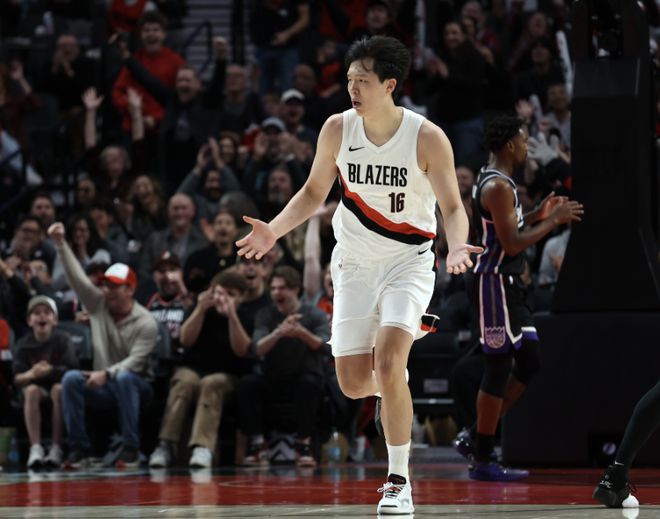 9分6板1帽!杨瀚森又创1新高!开拓者遭18分大逆转,库里轰28分